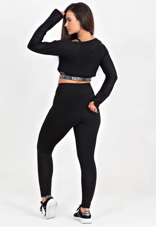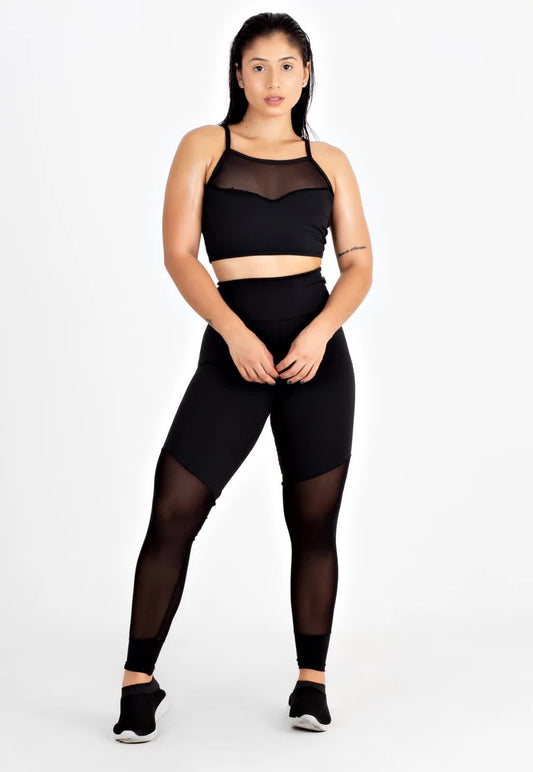 Cropped e Calça Legging Detalhe Tela Preto Conjunto | REF: LX279