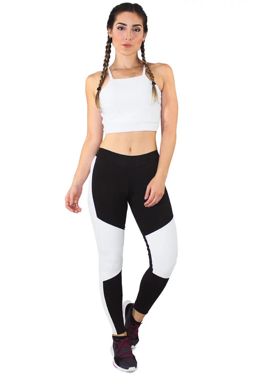 Conjunto Fitness Cropped Branco + Calça Fitness Preto Com Detalhe Branco | REF: LX057
