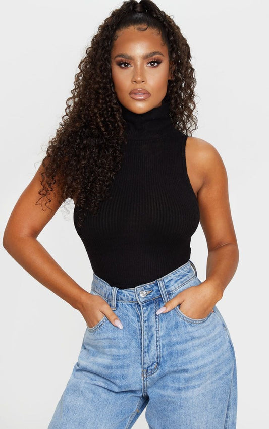 Body Canelado Gola Alta Sem Mangas Feminino | REF: BLC11