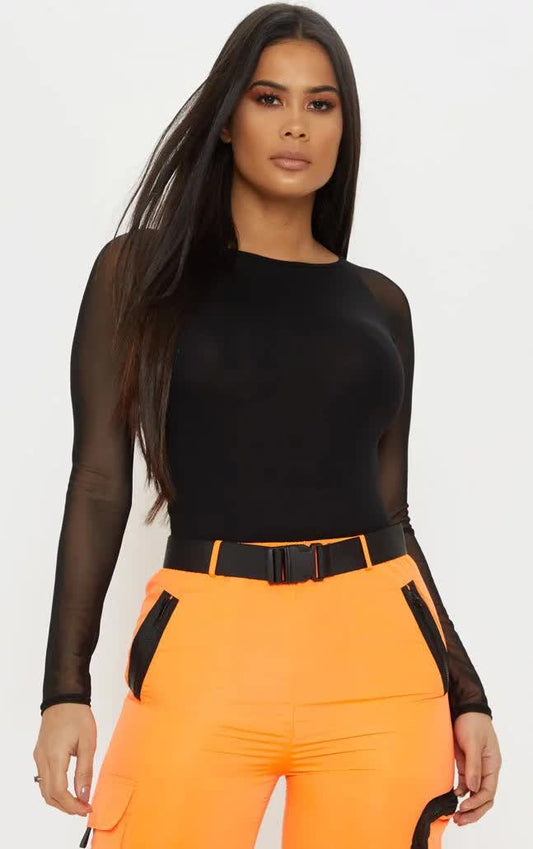 Body Manga Longa Tule Feminino com tecido firme e elástico que não transparece nem forma...